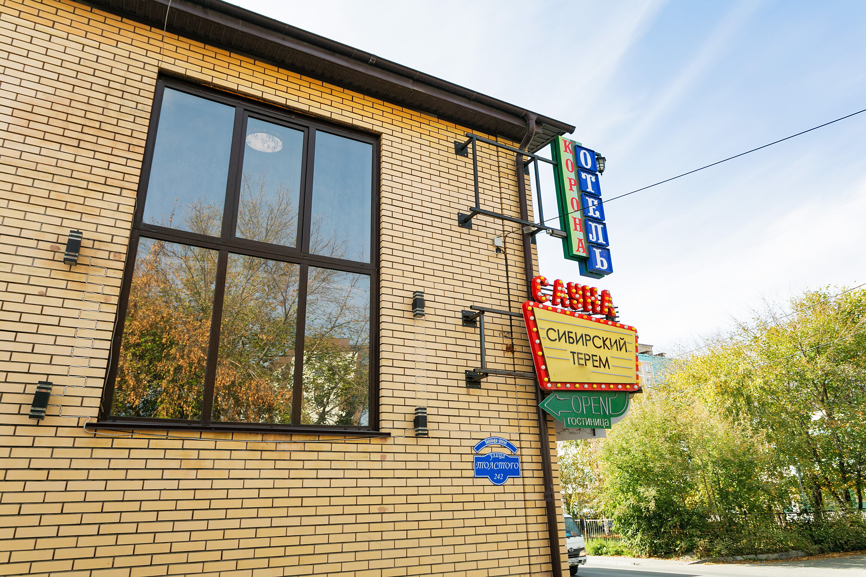 Отель Корона располагается по адресу улица Толстого, 242 и работает с Круглосуточно.